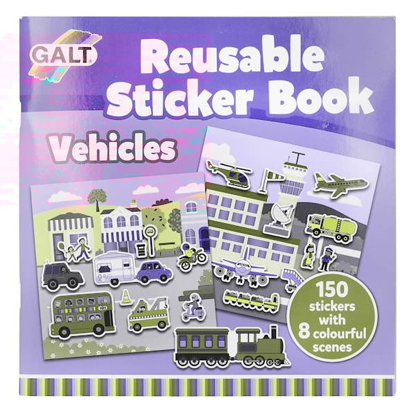 Gjenbrukbar Klistremerkebok – Kjøretøy er en flott gave til små kjøretøyfans som elsker å skape og gjenskape sine egne eventyr!