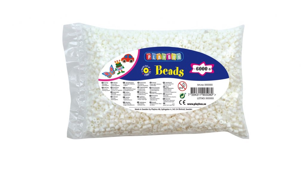 5x5mm perler er laget av plast Lowdensity polyetylen (LDPE). Testet og CE merket. Ikke for barn under 3 år.