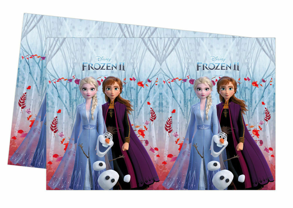 En duk med motiv på Disney Frost. På duken finner du barnas favorittkarakterer Elsa, Anna og Olaf. Festduken er perfekt å ha på bordet for feiringer av bursdager, fester, fester, babyshower, dåp og andre festligheter.