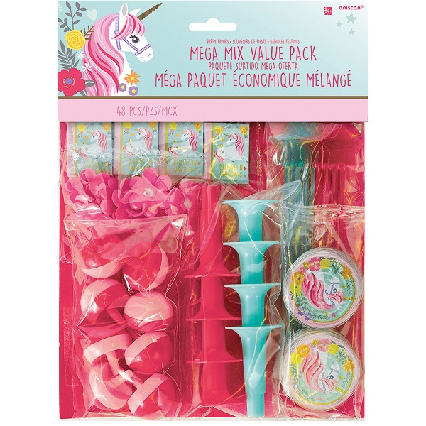 Et morsomt sett med 8 labyrintoppgaver, 8 minitegningsblokker, 8 tryllestave med stjernetoppen, 8 blomsterringer, 8 trompeter og 8 morsomme spinn!