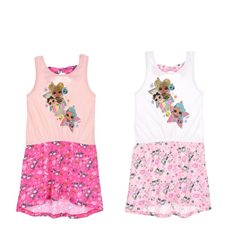A fine L.O.L. Raske kortermet kjole der dukker står på dansegulvet og begynner å danse. Den kortermet kjole barnet bærer når han går i barnehage, skole eller casual.
