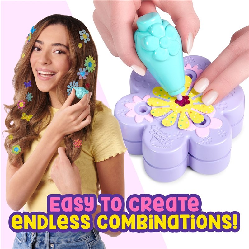 Velg mellom 130+ blomster og paljetter for å skape den perfekte looken for å prege håret ditt på sekunder. Lag endeløse looks ved å legge blomster og paljetter i lag for å matche din personlige stil!