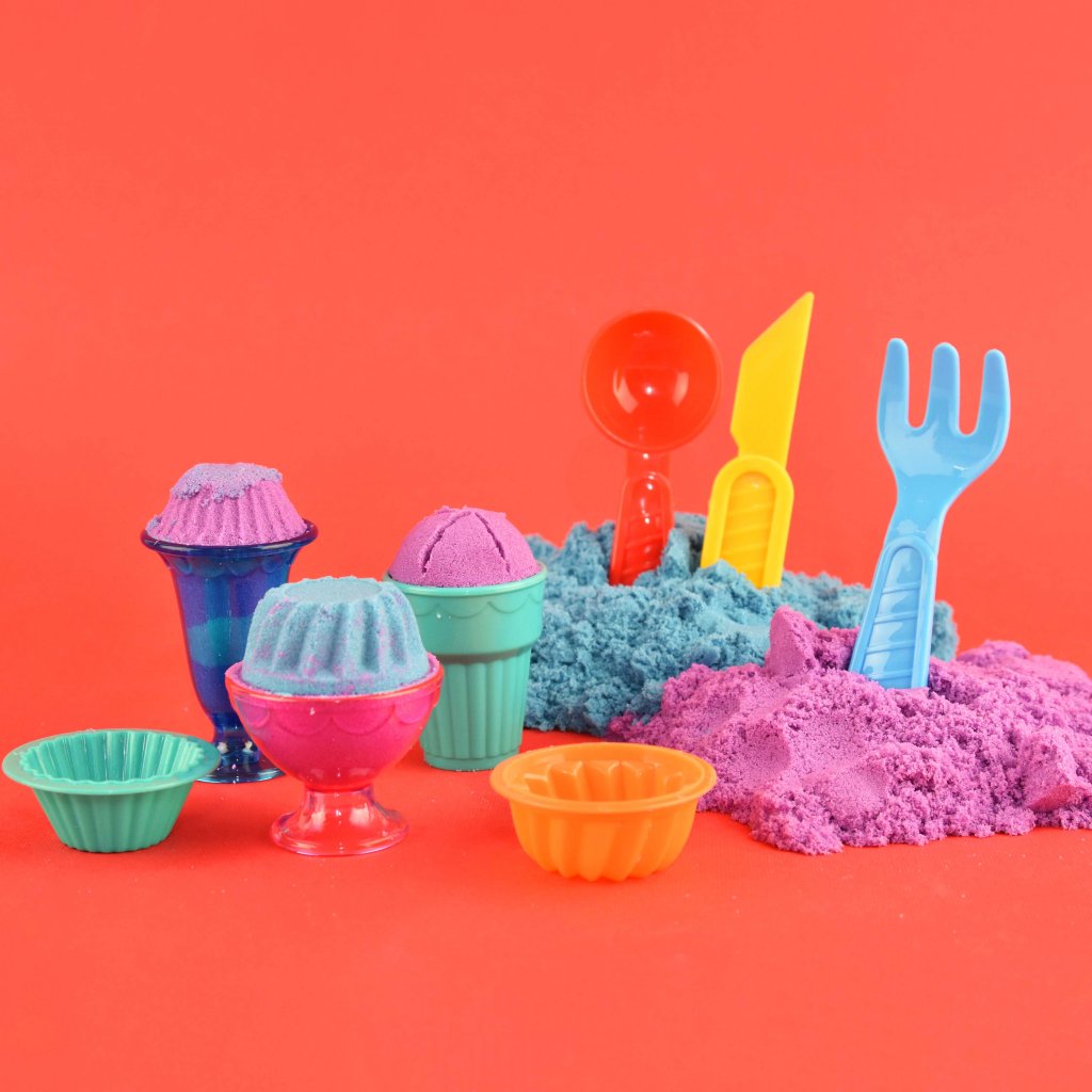 Du trenger ikke å dra til stranden for å ha det gøy! Med denne lekesanden kan du skape mange fine former og figurer. Sanden er myk og strekkbar og tilbys i to stilige farger. I tillegg følger det med 10 tilbehør som gjør leken enda morsommere! Du finner for eksempel isbeger, skje og gaffel. - 10 tilbehør inkludert - Giftfrie materialer
