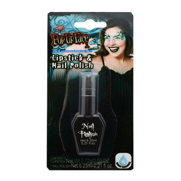 Kjøp giftfri makeup kit som inneholder leppestift og naggellack i sort farge. Ideell for de som ønsker å male negler og lepper