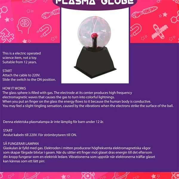 • Rek. Fra alder 12+ (dette er en elektrisk plasmakule, ikke et leketøy).