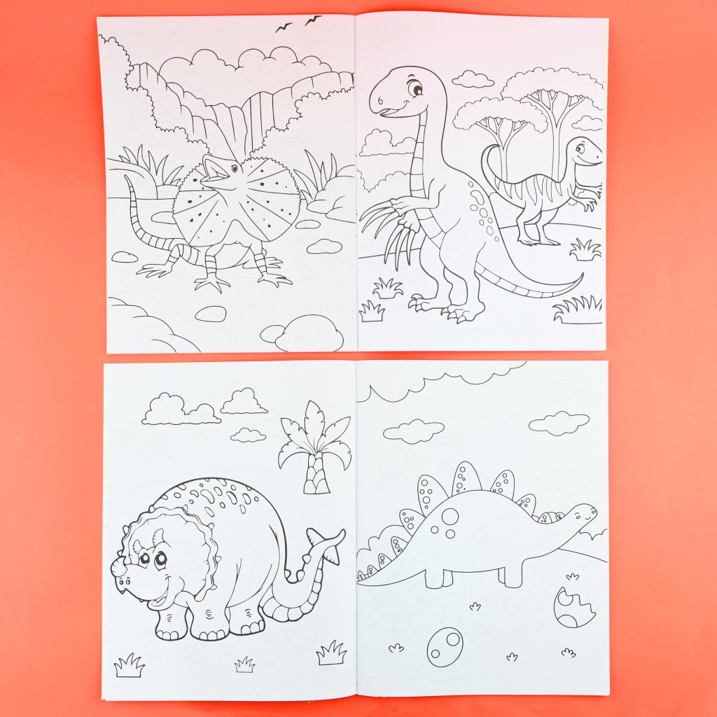 Gjør fargeleggingen morsommere med denne Fargeleggingsboken Dinosaur og la barna reise tilbake til dinosaurenes tid med hver side!