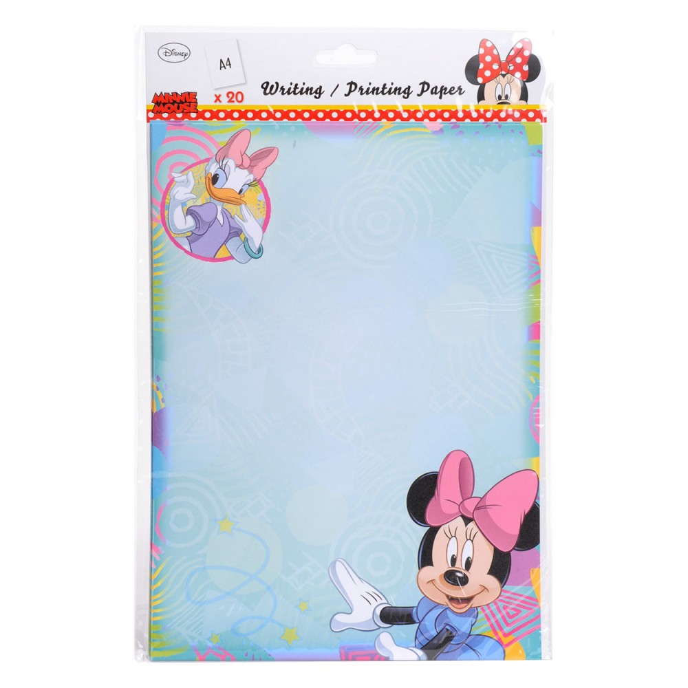 Du kan både skrive ch maling på papir dekorert med motiver av Minnie