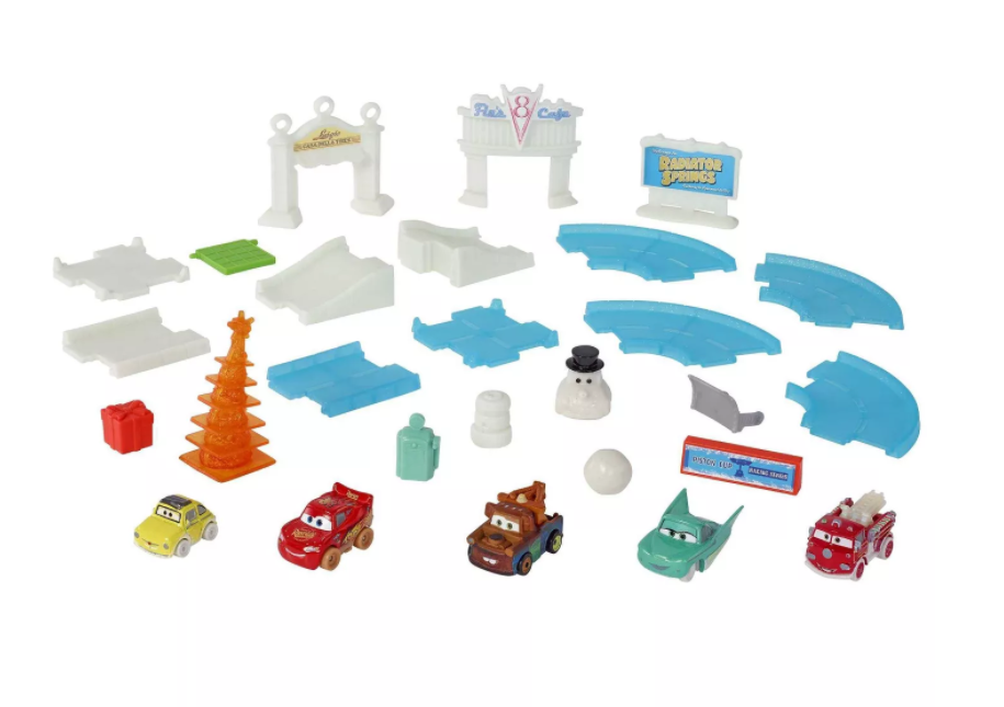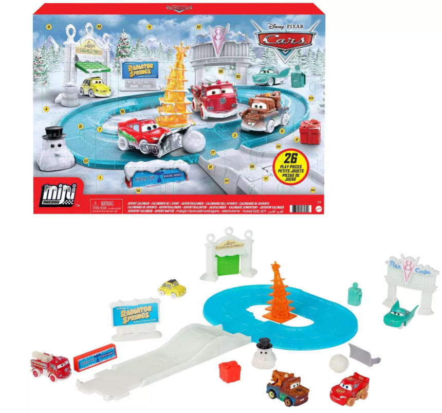 En fargerik adventskalender som er fullpakket med Disney -biler, julestoffer og mange overraskelser! Barn kan åpne en dør hver dag i 24 dager fram til julaften! Men det som gjør Disney Pixar Cars Advent Calendar så spesiell er at den kommer med en innkjørsel med juletema som barna kan leke med hele året!