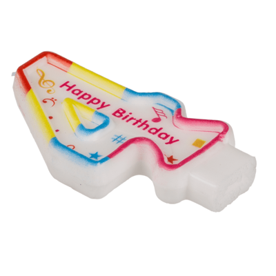 Bursdagen feires på beste måte med denne sifferlyset! Lyset har form som tallet fire (4) og har en stilig design med mange hyggelige detaljer. Det har flere fine farger og symboler, samt innskriften "Happy Birthday". Perfekt for bursdagskaken!
