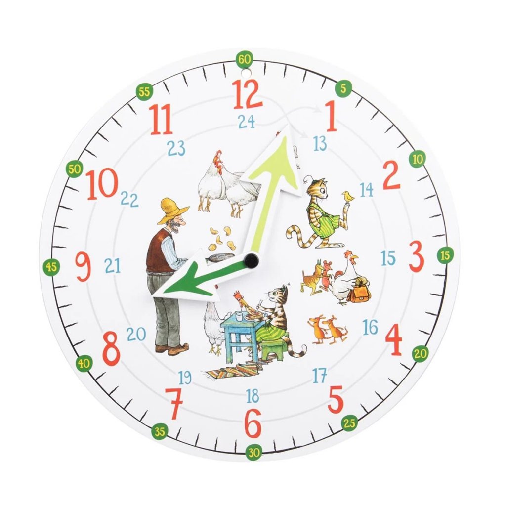 Pettson og Findus Øvingsklokke er en perfekt leke for å introdusere barn til konseptet tid og utvikle tidsforståelse på en pedagogisk og underholdende måte!