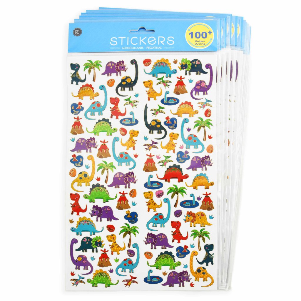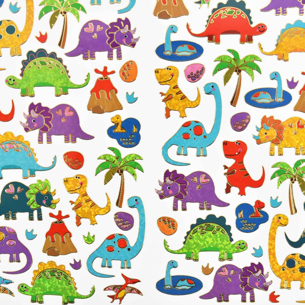Dinosaurer i alle farger og former! Disse klistremerkene tilbyr et utvalg av ulike dinosauryrker, samt vakre vulkaner og palmer. Du får totalt over 100 klistremerker som kan pryde datamaskinen, mobilen eller skolevesken. - Klistremerker med dinosaurmotiv - Over 100 stk