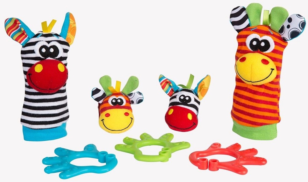 Zoe Zebra og Jerry Giraffe baby for å oppdage hender og føtter med sitt fargerike utseende. Fest Zoe og Jerry til barnets føtter og ankler og utvikle barnets motoriske ferdigheter!