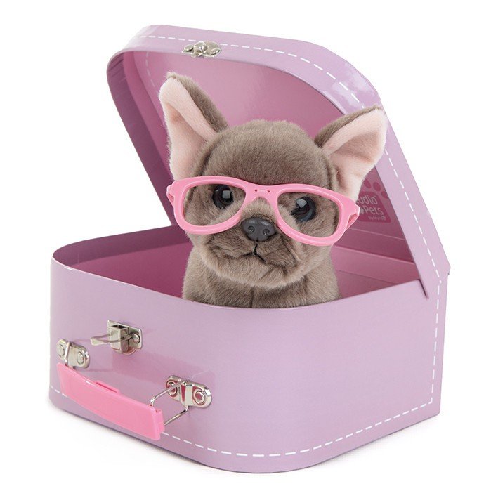 Studio Pets Plush Shady er et kosedyr som kommer i en søt koffert. Hunden Shady har en hvit og kjæledyrvennlig pels og et par kule rosa solbriller. Shady kan bli i kofferten, eller du kan bruke kofferten til å oppbevare alle favorittleksene dine. Bruk dette kjæledyret til å trene barn til å ta vare på sitt eget kjæledyr. Med sitt søte og søte utseende og fine pels er det vanskelig å ikke like hunden Shady!