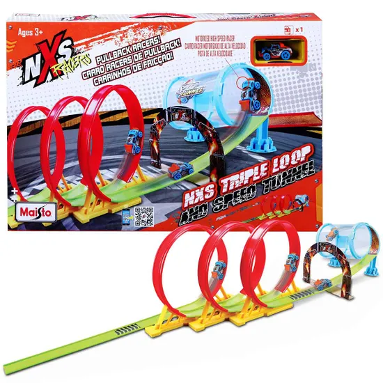 Er du klar for actionfylt moro? Da er denne bilbanen noe for deg! Den inkluderer 3 løkker og avsluttes med en kul fartstunnel. En fin bil følger med, så leken kan begynne med en gang. Plasser bilen på rett sted, dra den bakover og slipp, deretter gjør banen resten! - Bilbanesett - Bil inkludert - Inkluderer 3 løkker - Avsluttes med fartstunnel Produktinformasjon: Mål forpakning: 7,7 x 35,5 x 55,9 cm Anbefalt alder: Fra 3 år