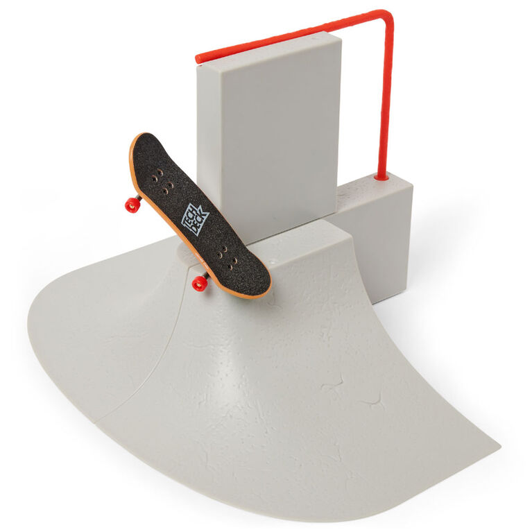 Inkluderer: 1 Tech Deck gripebrett, 1 stor rampe, 1 skinne, 1 vertikal vegg, 1 kobling, 1 instruksjonsark