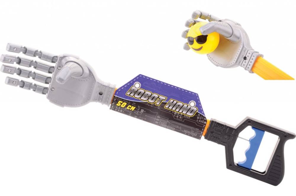 robot hånd er av plastmateriale og måler 50 cm lang.