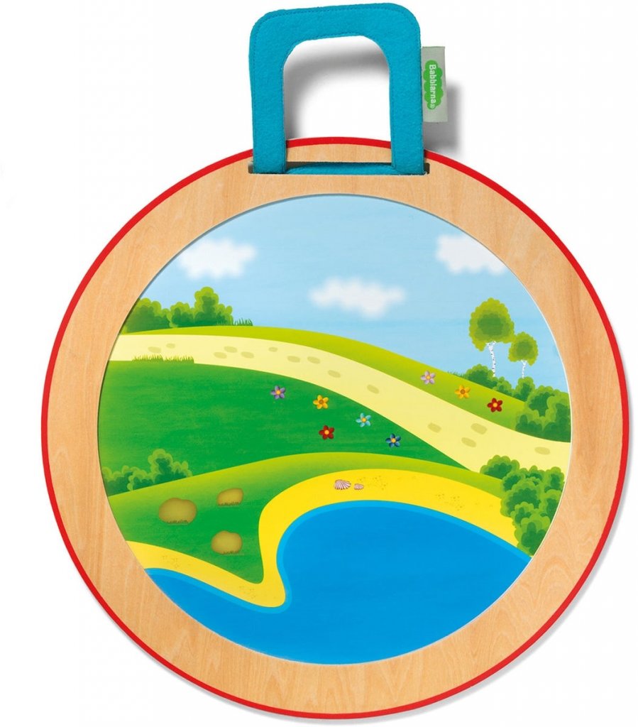 Maleriet viser et strandområde der babblerne tok en tur, men hva gjør de der? Fortell din egen historie om Babbler's Day på stranden, ved hjelp av magneter på brettet. Når du ikke bruker brettet, kan du henge det på veggen. Den inneholder også en lomme hvor du kan lagre magneter når den ikke er i bruk.