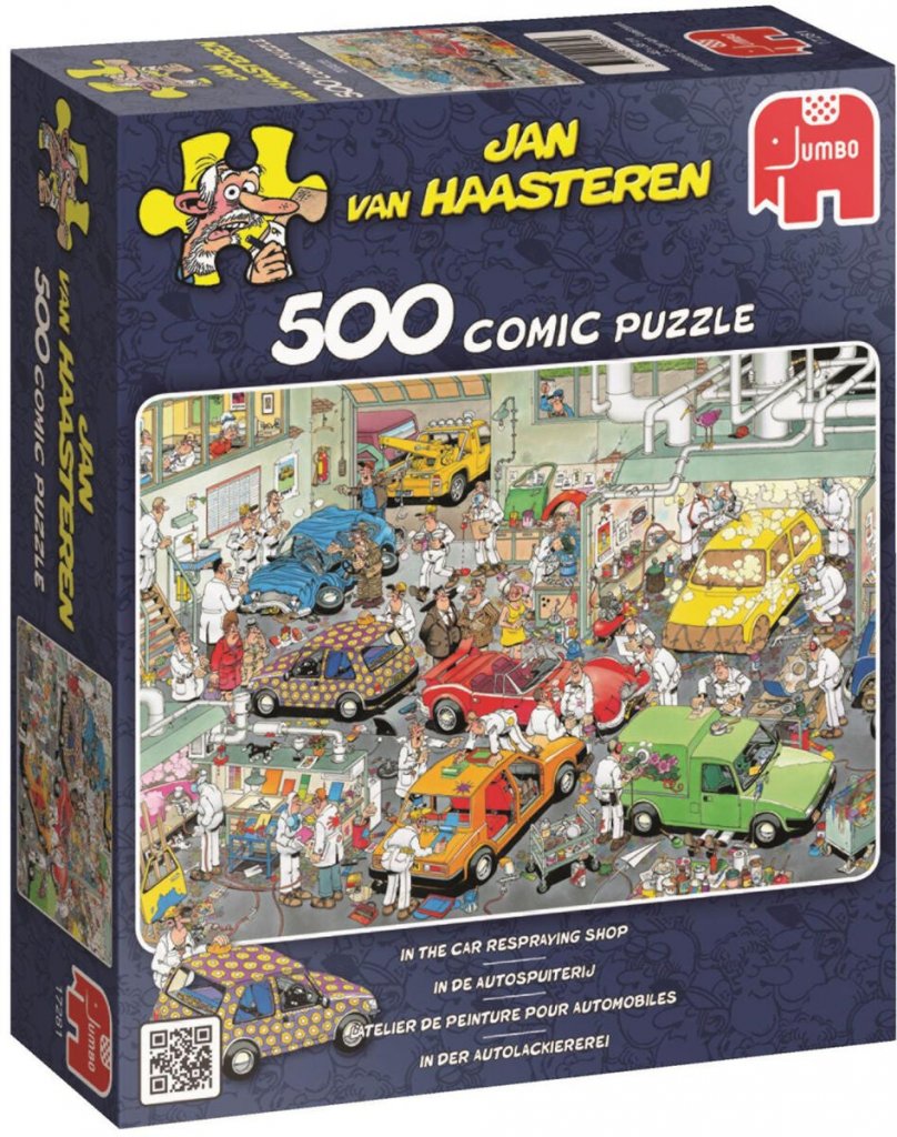 Jan Van Haasteren bringer dette fargerike og fantastiske puslespillet på 500 stykker kalt In the car respraying shop, designet for alle fans av Jan Van Haasteren og hans spesielle stil. Når puslespillet er satt sammen, er størrelsen ca. 49x35 cm.