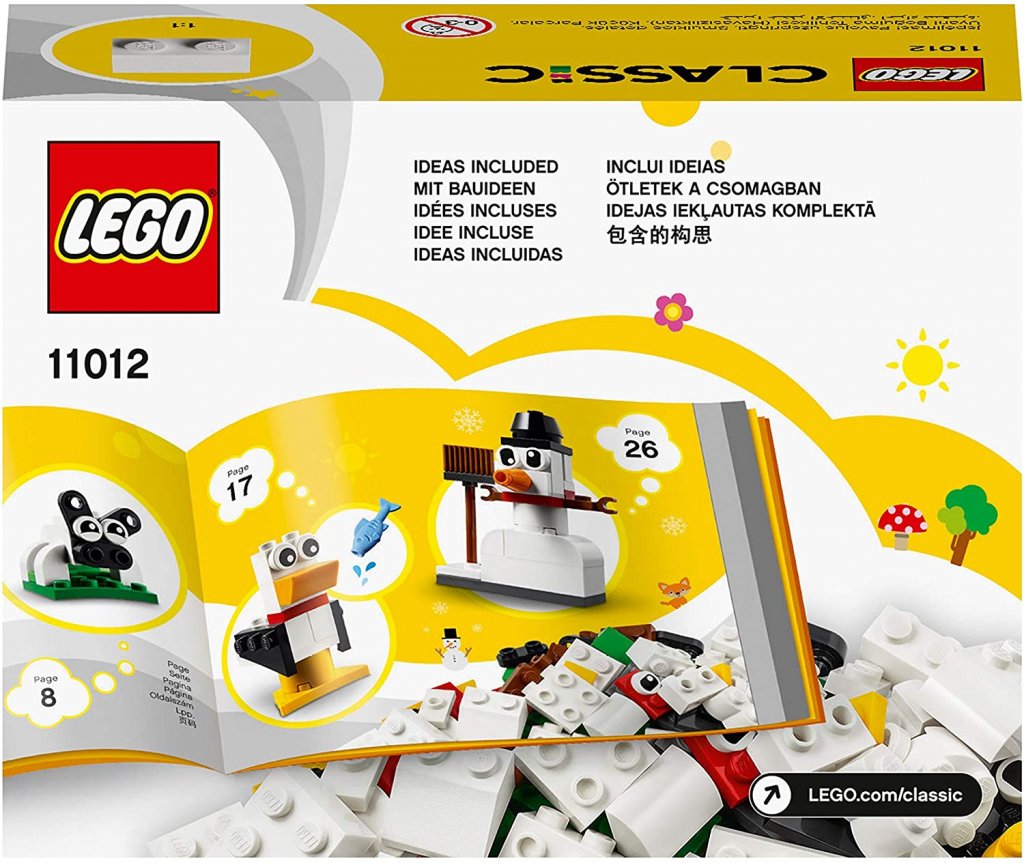 Settet inneholder det som trengs for å bygge en snømann med kost, en måke med fisk og en sau med blomsteråker.