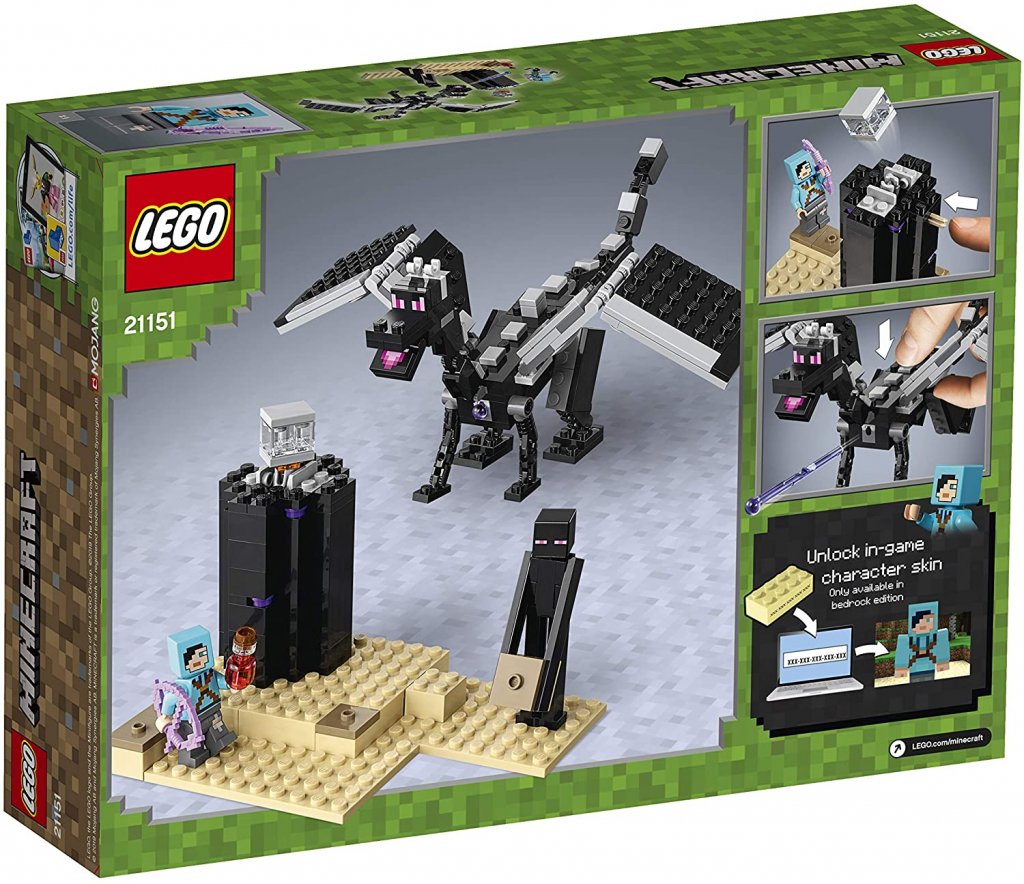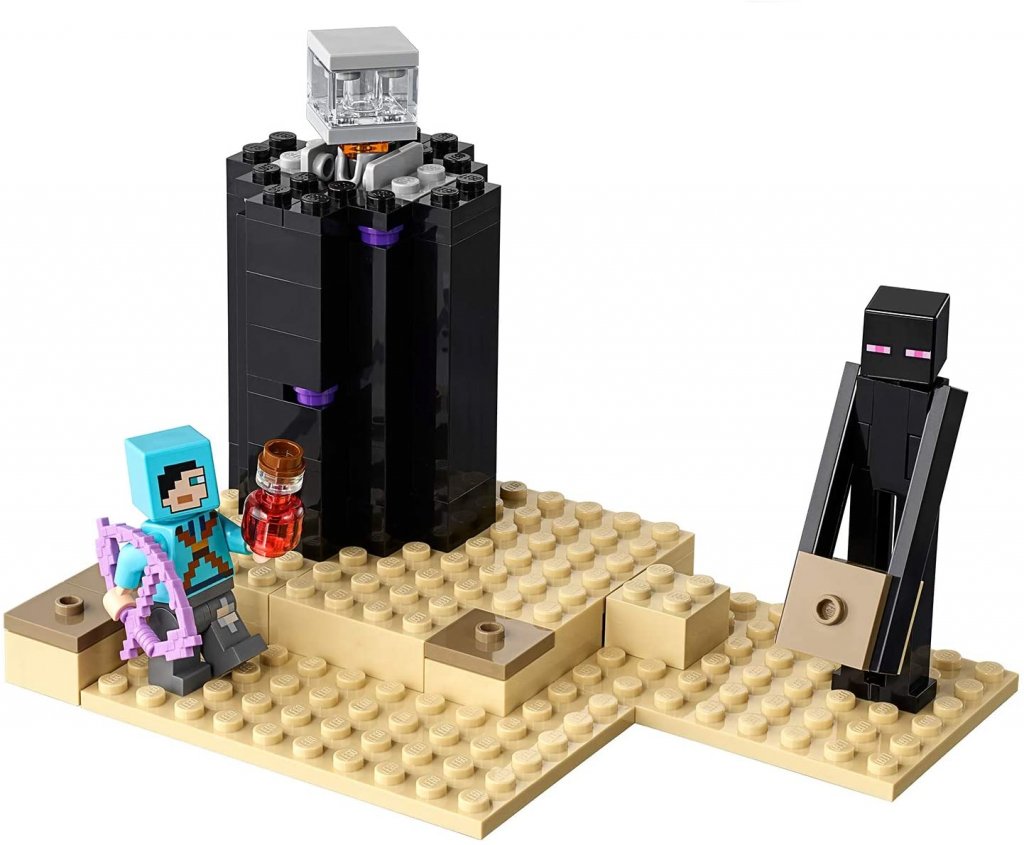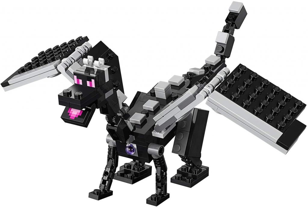 Her kan Minecraft-fanen gjenskape End-kampen om og om igjen utenfor datamaskinen. Settet leveres med Enderdragon, Enderman, Dragonslayer, "endstone tile", "obsidiantorn" og annet lite tilbehør som trengs i End.