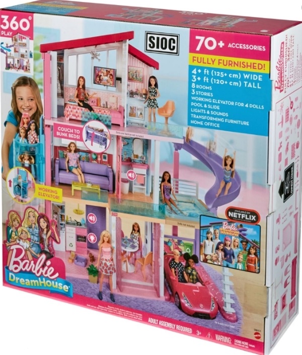 Et hus på 3 etasjer for barbiedukker, kan det bli bedre? En heis for dukkene, 8 forskjellige rom, en garasje for bilen (selges separat), et basseng, forskjellige møbler og over 60+ forskjellige husholdningsartikler inkludert en liten valp. Møblene som følger med er forvandlet og kan gjøres om til nye møbler. Sofaen blir for eksempel til en køyeseng og salongbordet til en seng!