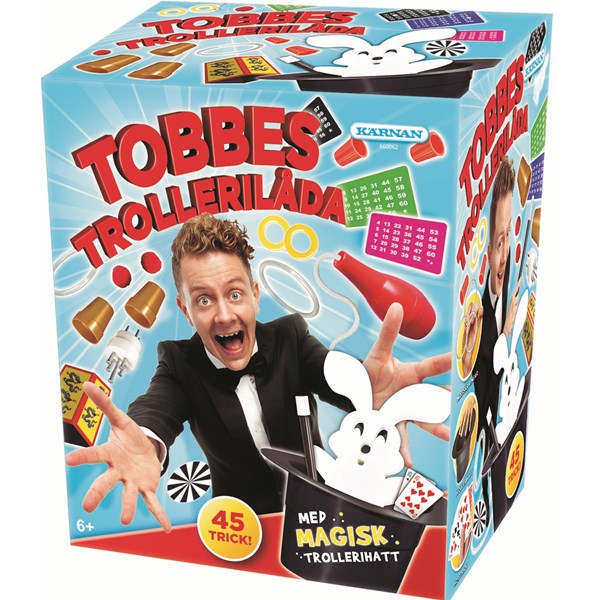 Lær magi med Tobbe Wizard! Denne morsomme magiske boksen inneholder 45 morsomme triks, en magisk hat og annet tilbehør. Magisk Hat magi med en hemmelig spesiell funksjon, og boksen en rekke andre smarte ting!
