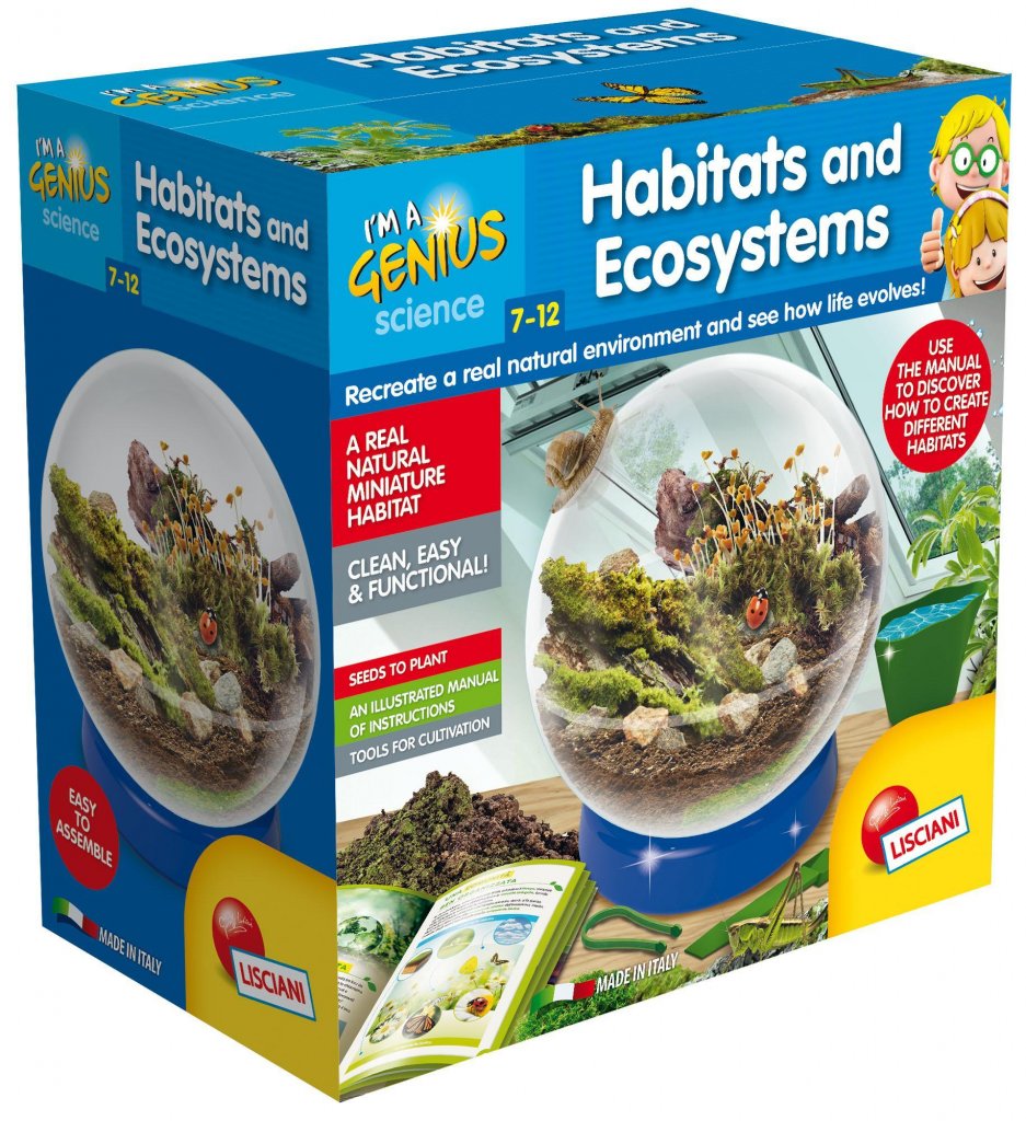 En komplett økosystem som er både solid og funksjonell. Seet kan bygges for å observere flora og fauna samhandle med naturen. Det er enkelt å sette opp, kan du bruke et termometer for å kontrollere temprature i miljøet. Inkluderer manuell og instruksjoner om hvordan å gjenskape en perfekt balansert og naturlig habitat. P>