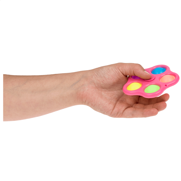 Men nå er det fidget spinners med Pop it bobler på! Spinn fidget Spinner og pop noen bobler, og her er den nydelige poplyden! Fidget -spinneren er tilgjengelig i rosa, blå og hvit. Fargen på boblene varierer i farge fra fidget spinner!