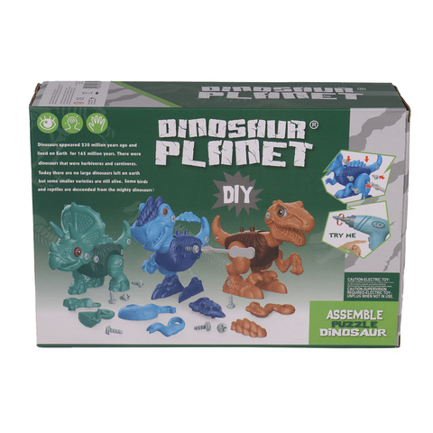 Bygg din egen dinosaurekompis! Med dette settet kan du sette sammen 3 dinosaurer med hjelp av boremaskin, skruer og instruksjoner. En morsom og stimulerende utfordring! Boremaskinen er batteridrevet og morsom og trygg å bruke. De ferdige dinosaurene har realistiske detaljer og bevegelige deler. - 3 forskjellige dinosaurer å bygge - Batteridrevet boremaskin inkludert