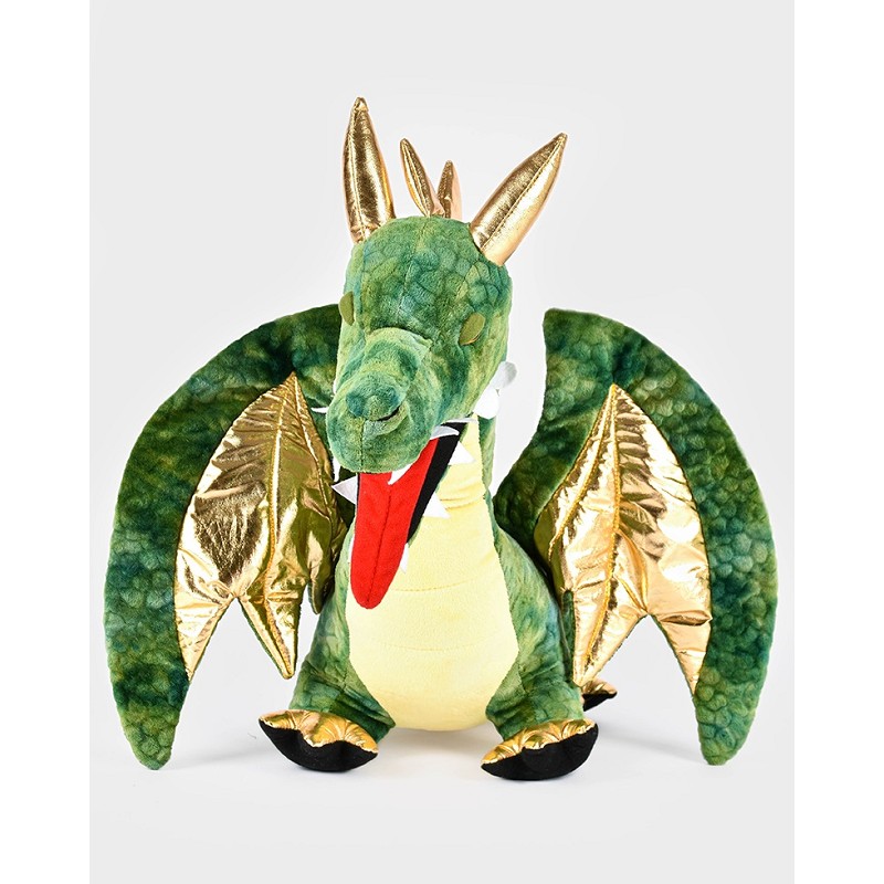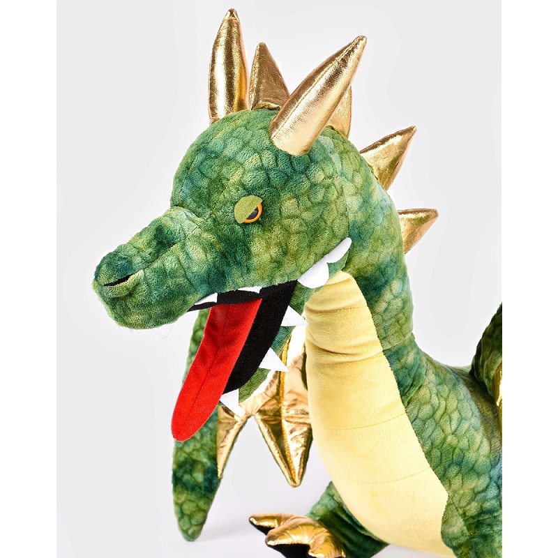 Spennende kosedyr i stort format! Denne kule dragen har flott design i gull og grønt, og måler hele 70 cm. Den er laget av polyester med myk og behagelig følelse. Kosedyret kan vaskes på 40 grader. - Kan vaskes på 40 grader Produktinformasjon: Materiale: Polyester Mål: 70 cm