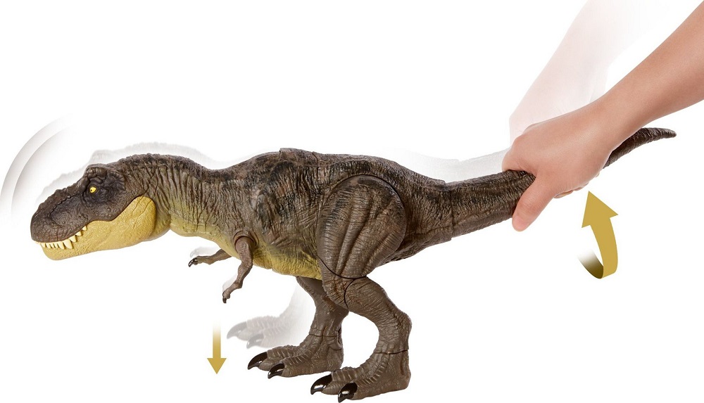 Stomp N Attack Tyrannosaurus Rex har det realistiske utseendet til en ekte T-Rex. T-Rex kommer fra Netflix-serien Dino Escape og utseendet matcher nøyaktig hvordan utseendet fra serien ser ut! For å gjøre T-rex-angrep, trykk på den skjulte knappen på ryggen, og T-rex åpner munnen og går for et høyt brøl som får noen til å begynne å riste! drei halen til høyre og venstre for å få beina til å begynne å bevege seg og lage * stamp * lyder. Ingenting kan stoppe en T-Rex, ikke engang en metallmaske! Kan du lykkes med å løpe vekk fra en T-Rex eller kanskje overliste den intelligensen?