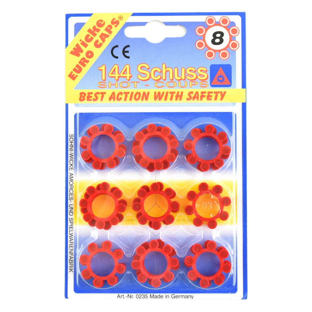 Sørg for å være fulladet for morsom og actionfylt lek! Denne pakken inneholder totalt 144 smellpulverskudd. De er fordelt på 18 ringer og passer til leketøyvåpen som tar 8 skudd om gangen. - Totalt 144 skudd - 18 ringer Produktinformasjon: Materiale: Plast Mål: 2,5 x 2,5 cm Vekt inkludert emballasje: 0,011 kg