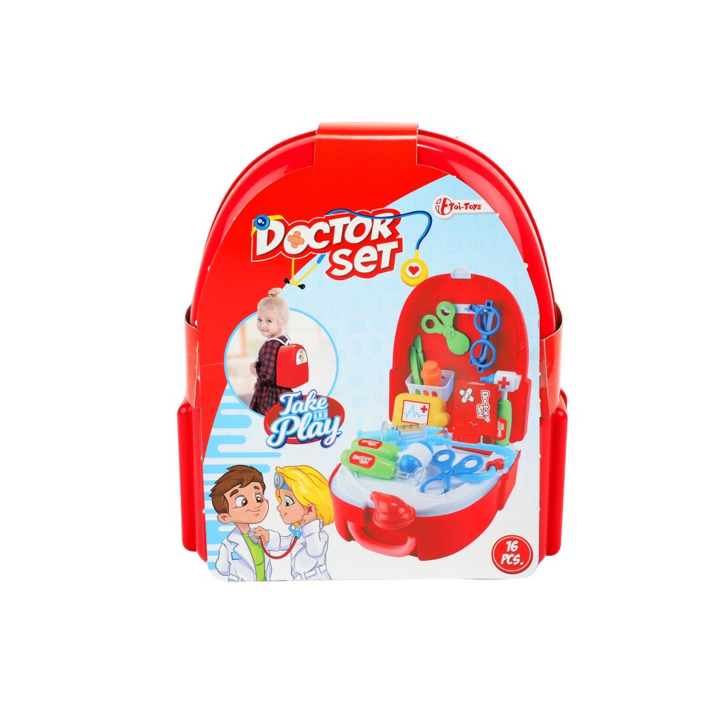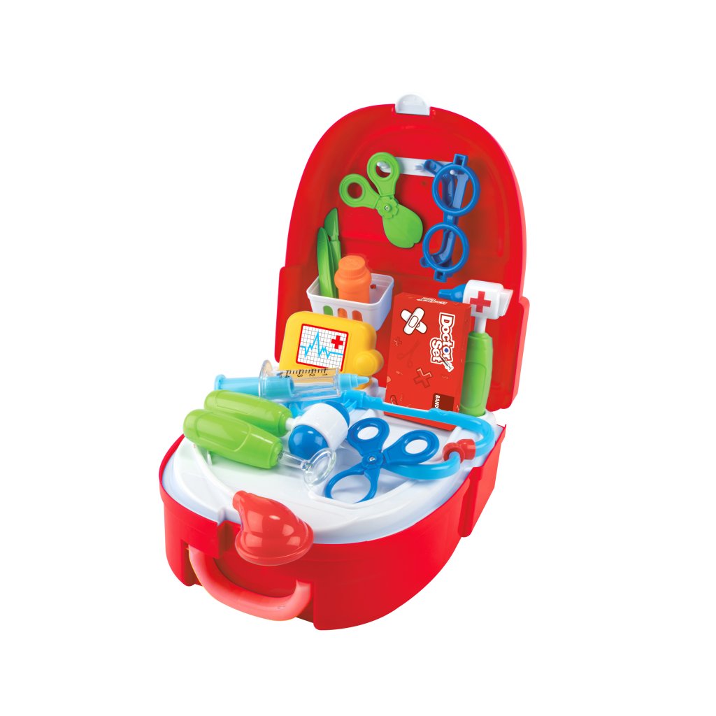 Doktorsset er perfekt for rollen lek og late spille, kan barna late spille lege og settet inneholder flere tilbehør for å skjemme bort sine venner. Alt tilbehøret får plass i bærevesken slik at unge leger kan ta vare på sine syke dukker eller bamser uansett hvor de er. ! Den har et håndtak så det er lett å bære eller slitasje på ryggen som en ryggsekk
