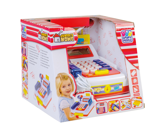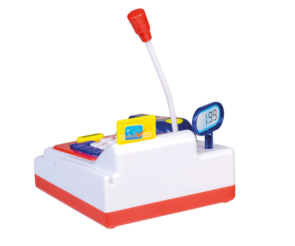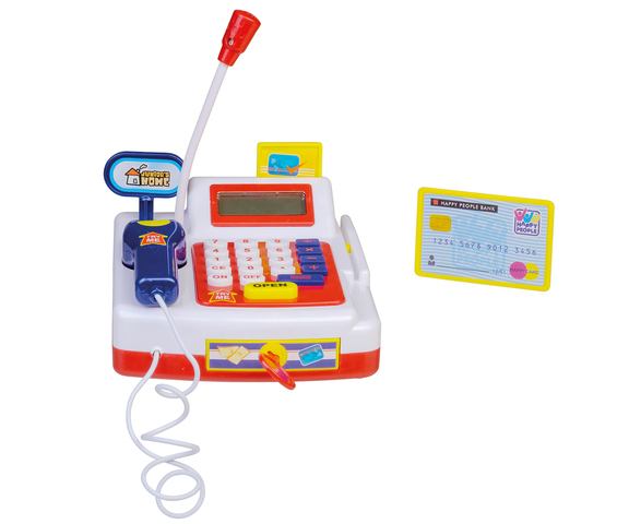 Nå kan du starte din egen lille butikk hjemme! Denne søte kassaapparaten har minikalkulator, skanner og lekemikrofon. Den tilbyr både lys og lyd, og i tillegg følger det med et fint kredittkort! Kassaapparaten drives av batterier. - Har minikalkulator, skanner og lekemikrofon - Kredittkort følger med - Batteridrevet