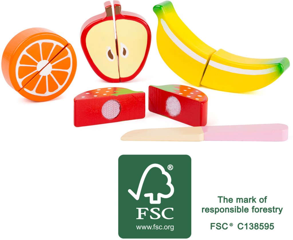 Avtagbar frukt tre sepereras med det medfølgende träkniven. De solide trebiter holdt sammen med borrelås. Dette produktet er laget av FSC & reg; 100% -sertifiserte trevirke. P>
