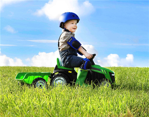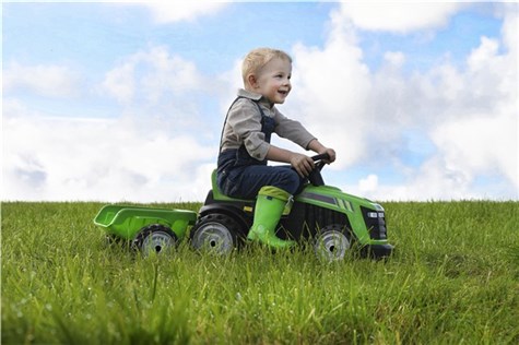 Ta en titt på denne stilige grønne traktoren med tilhengeren, den er perfekt for de fantastiske spilletidene en sommerkveld, og takket være de kraftige dekkene er traktoren i stand til å kjøre i tyngre underlag og terreng.