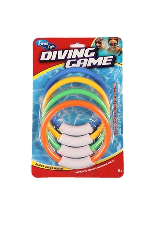 Disse dykeringene er både morsomme og utviklende! Når de synker ned til bunnen, oppfordres barna til å dykke ned og plukke dem opp. Dette fremmer svømmeferdigheter og vannferdigheter på en morsom og spennende måte. Dykeringene kommer i et sett på 4 og har klare farger som synes godt i vannet. - Sett med 4 dykeringer