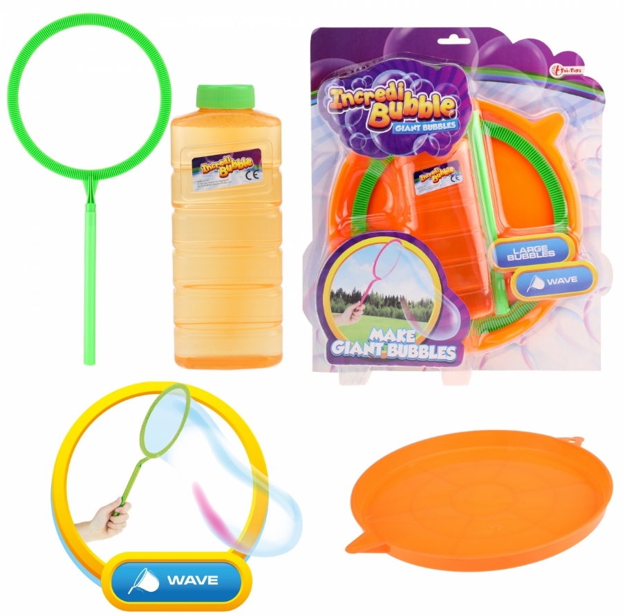 Med denne fantastiske bobleoppfinnelsen kan du lage noe helt nytt - store bobler! Fyll med den medfølgende boblevæsken, og en stor boble blir opprettet.